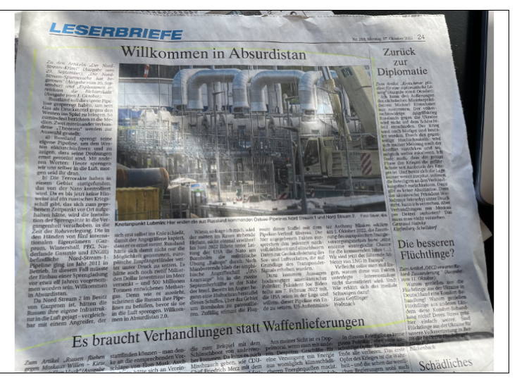 Junge Welt vom 18.10.2022 nach einer Benachrichtigung der jungen Welt. Gedruckter Text rot. Donaukurier wie Bild: