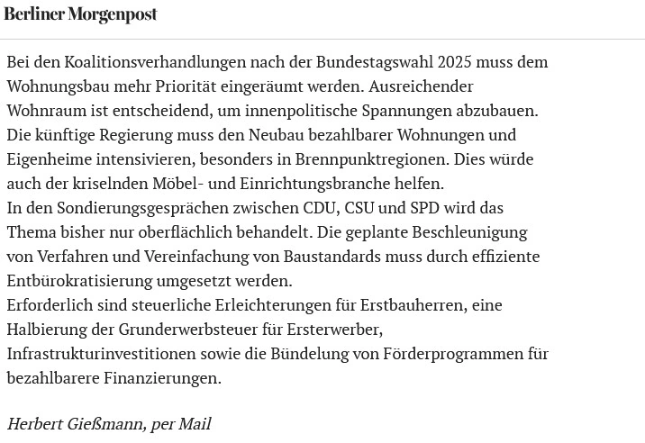 Berliner Morgenpost vom 19.03.2025 wie Bild (Anmerkung der Redaktion: Wir haben noch nie einen derart zerstückelten Leserbrief gesehen)