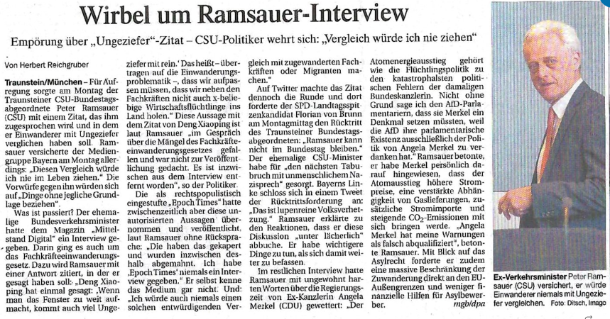 Tatsache scheint zu sein, dass Hr. Ramsauer dem Magazin "Mittelstand Digital" ein Interview gab und darin den früheren chinesischen Staatschef Deng-xsiaoping zitierte.